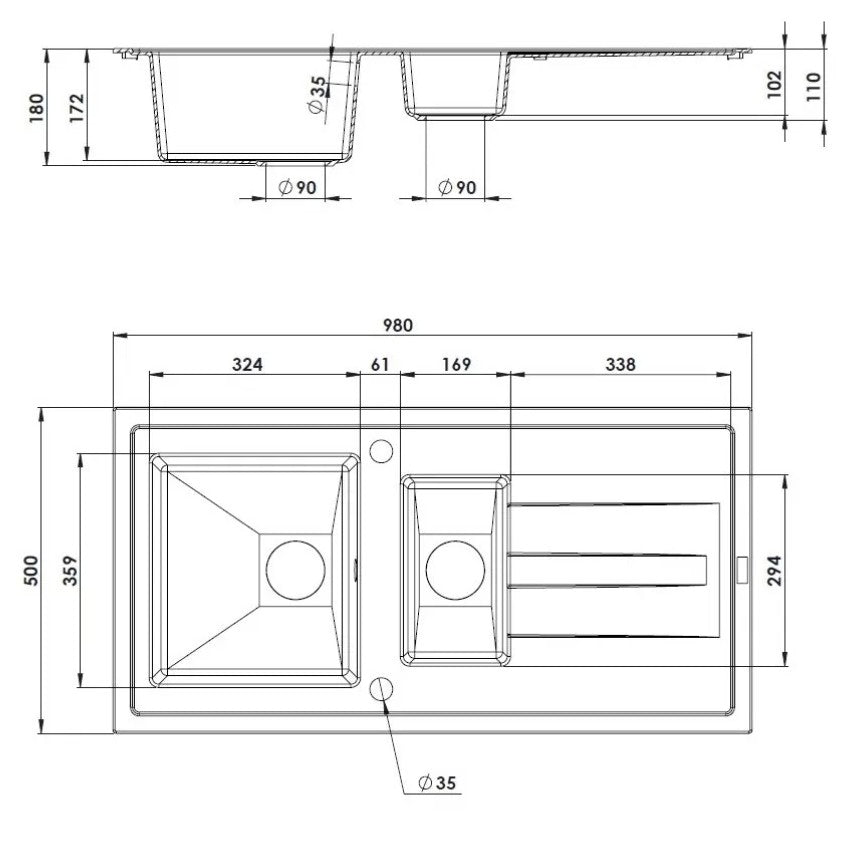 - Livré avec notice de pose, système de vidage automatique et accessoires (bonde, panier, siphon et système d’actionnement de fermeture/ouverture automatique).