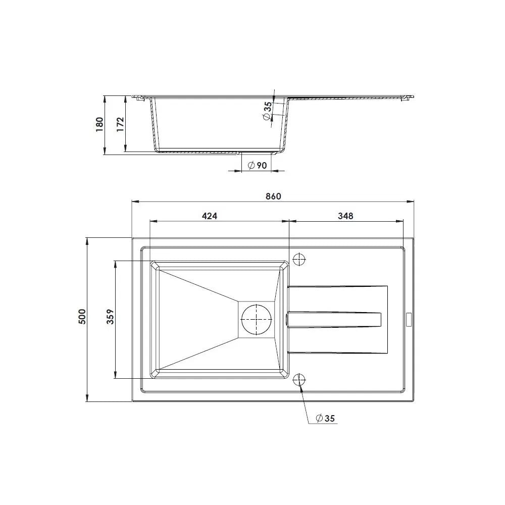 - Modèle (nombre de cuve) : Évier 1 bac