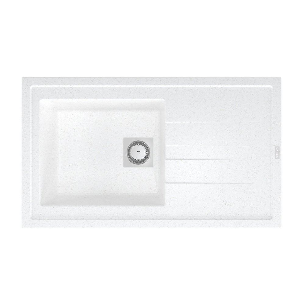 Découvrez notre évier en Careagranit®, un matériau Minéral composé à 90% de quartz et de granit, offrant une résistance élevée aux chocs et aux rayures.