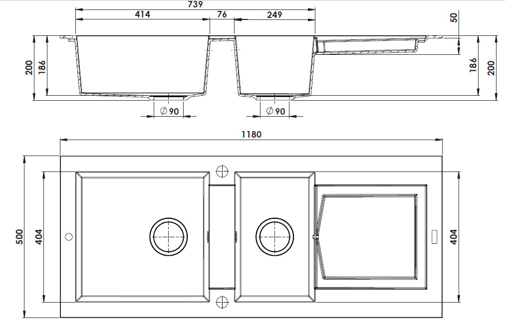 - Modèle (nombre de cuve) : Évier 2 bacs