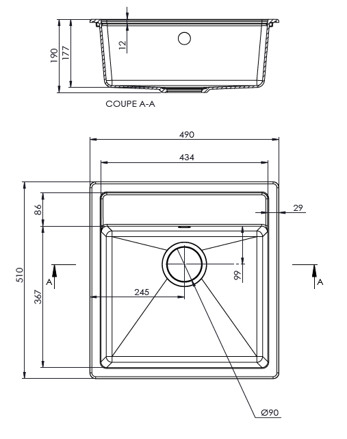 - Livré avec notice de pose, système de vidage manuel et accessoires (bonde, panier, siphon).