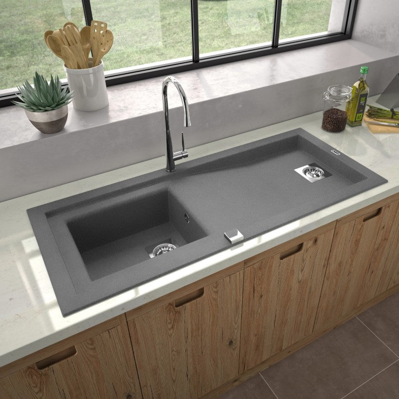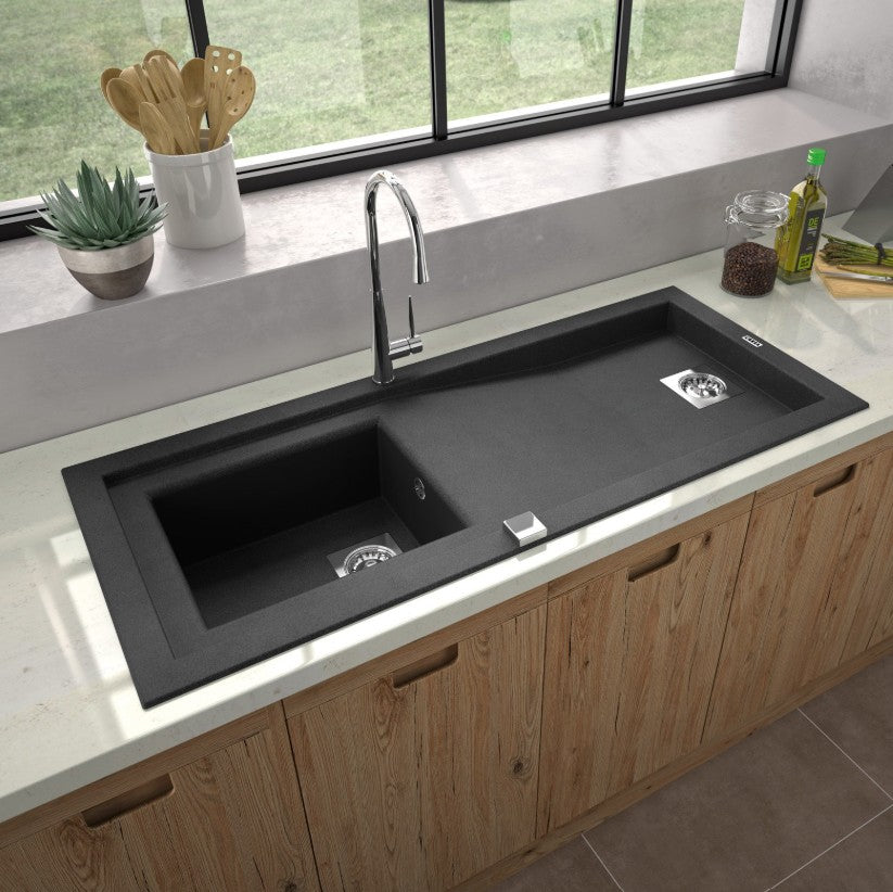 Évier à encastrer PIROG 1 bac - 1 égouttoir - réversible