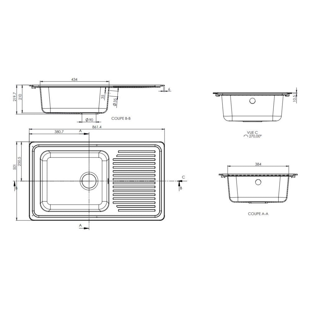 Évier à encastrer VÉNUS 1 bac - 1 égouttoir - réversible