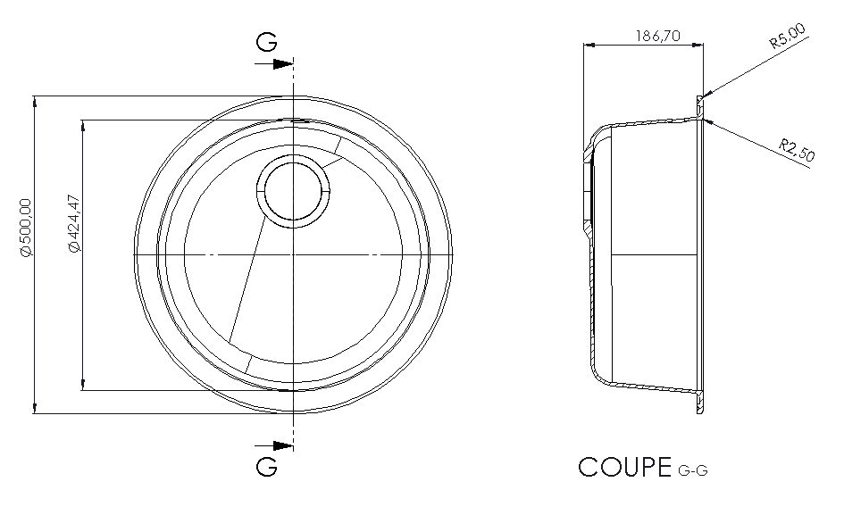 - Évier rond à encastrer MIRADE 1 bac Taupe