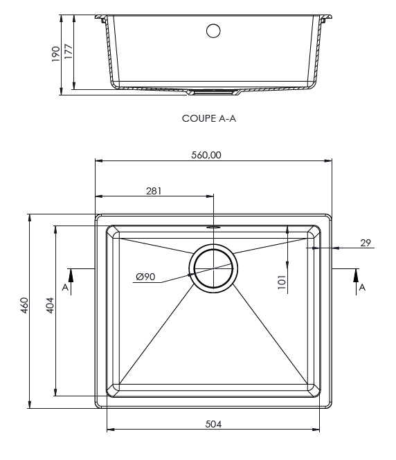 - Livré avec notice de pose, système de vidage manuel et accessoires (bonde, panier, siphon).