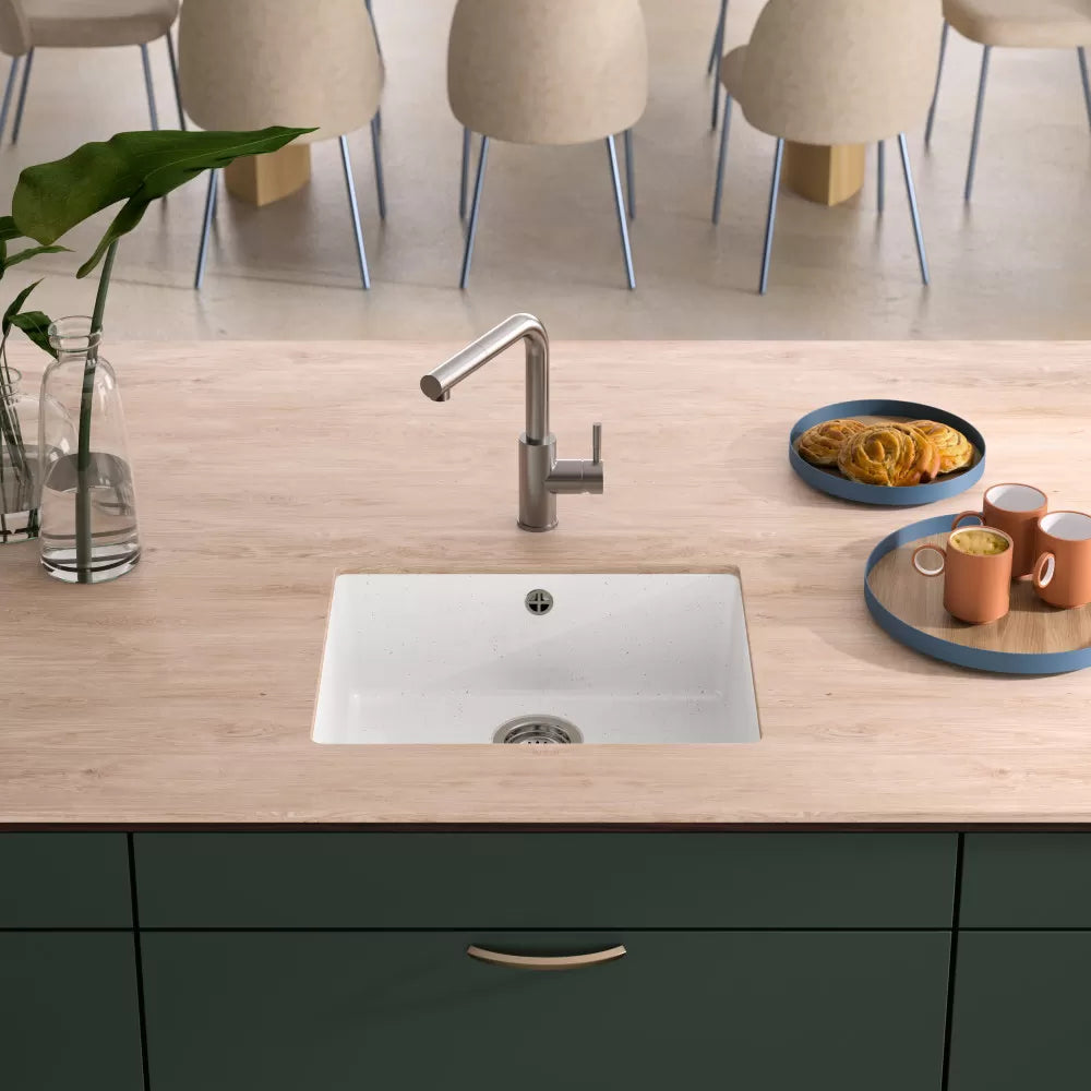 Découvrez notre évier de cuisine en Carealith®, un matériau Minéral léger et résistant offrant de nombreux avantages :