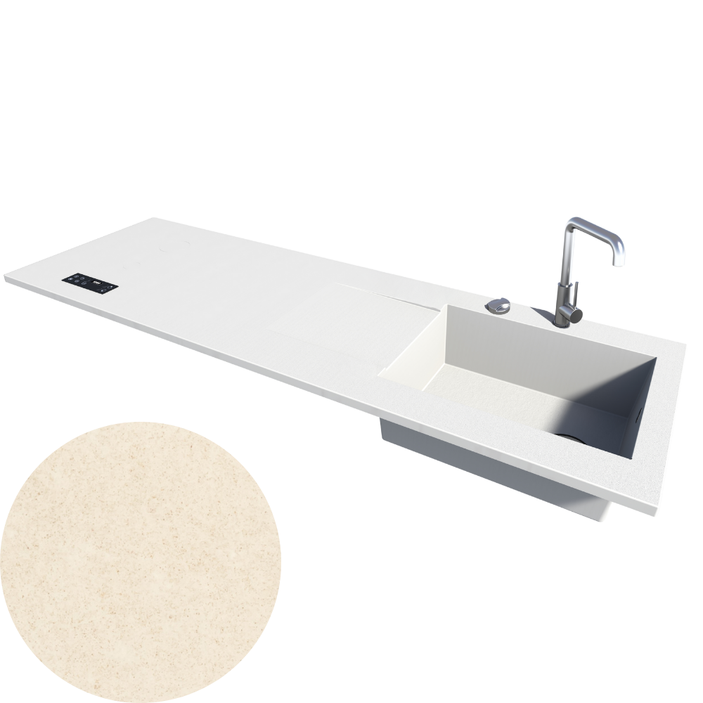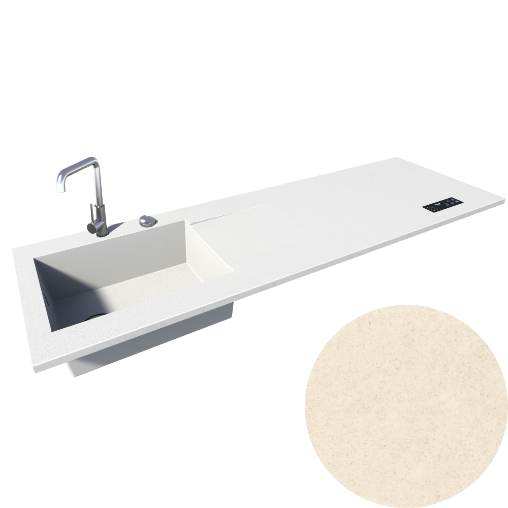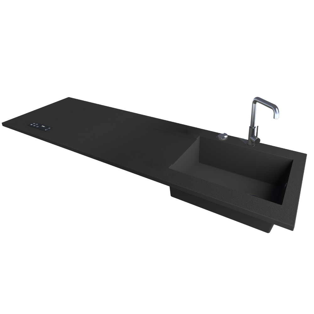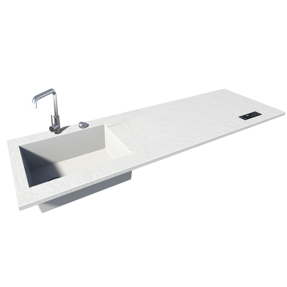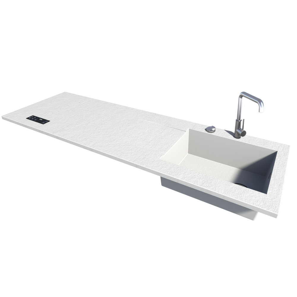 Plan de travail minéral avec bac intégré et cuisson invisible 2 zones