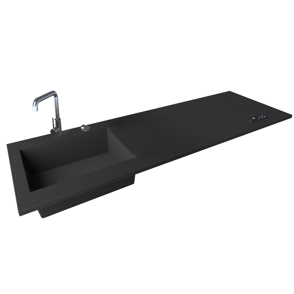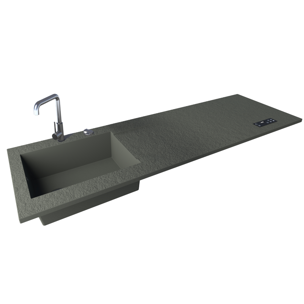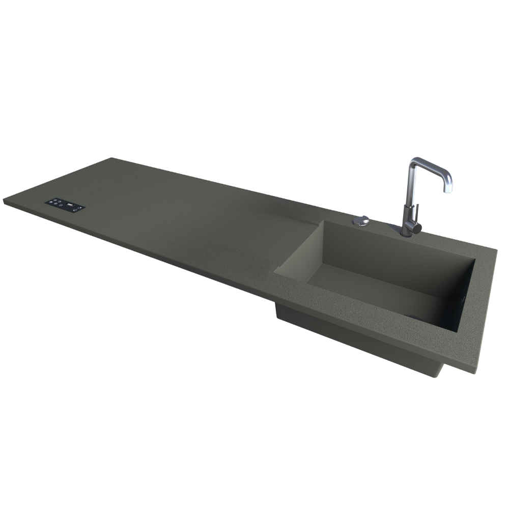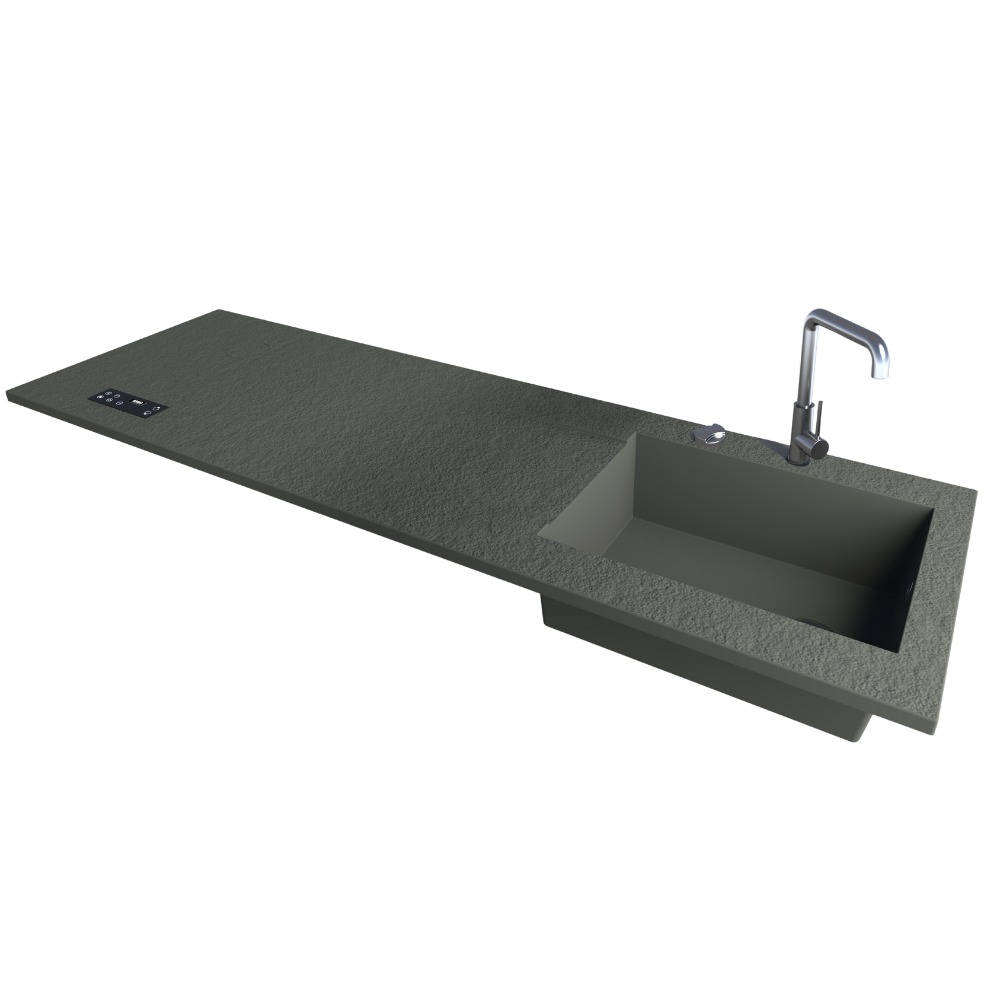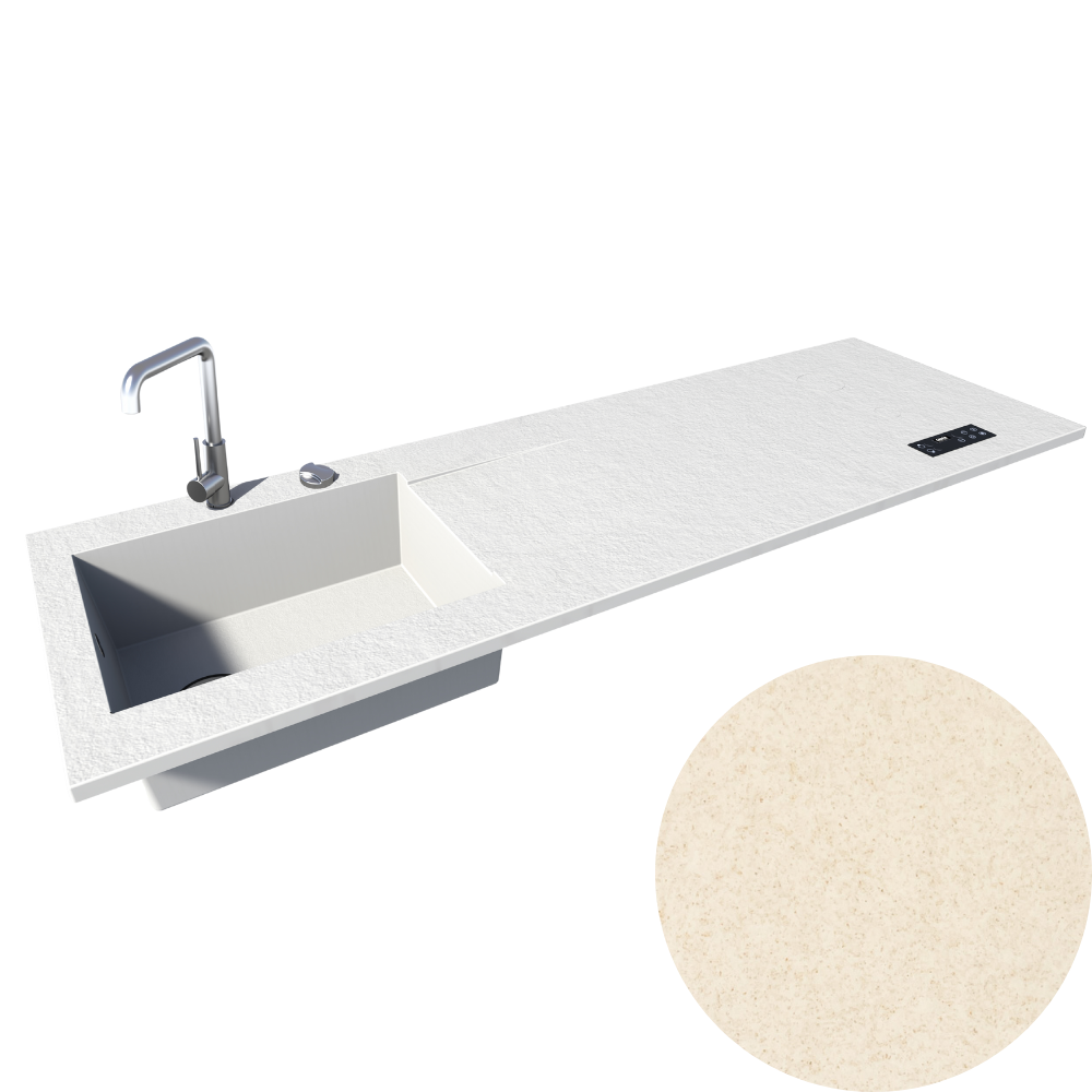 Plan de travail minéral avec bac intégré et cuisson invisible 2 zones
